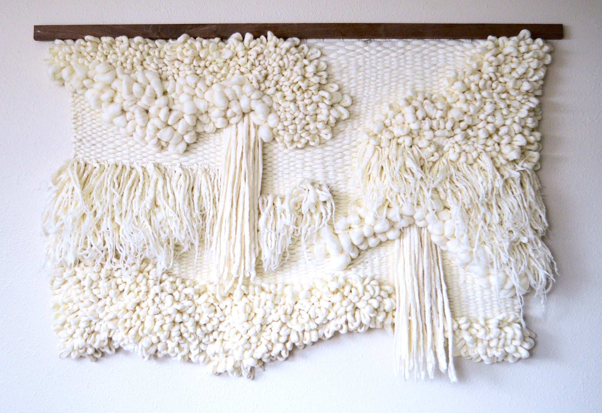 I absolutely love working on large scale commissions, so please get in touch if you're interested in something similar but would like some variations or adjustments to better suit your space. I hand dye all of my own yarns, so matching a particular color palette is right up my alley! Please send me an email for more details on pricing etc