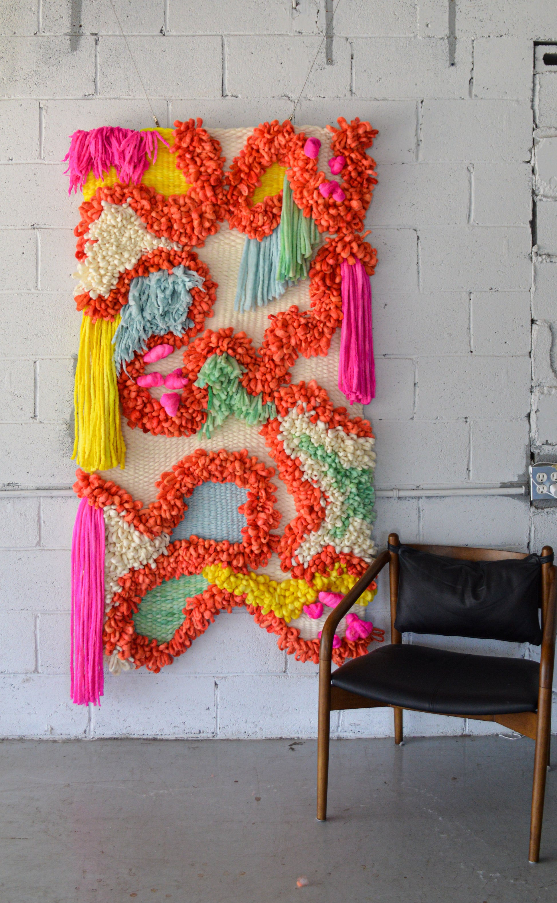 I absolutely love working on large scale commissions, so please get in touch if you're interested in something similar but would like some variations or adjustments to better suit your space. I hand dye all of my own yarns, so matching a particular color palette is right up my alley! Please send me an email for more details on pricing etc