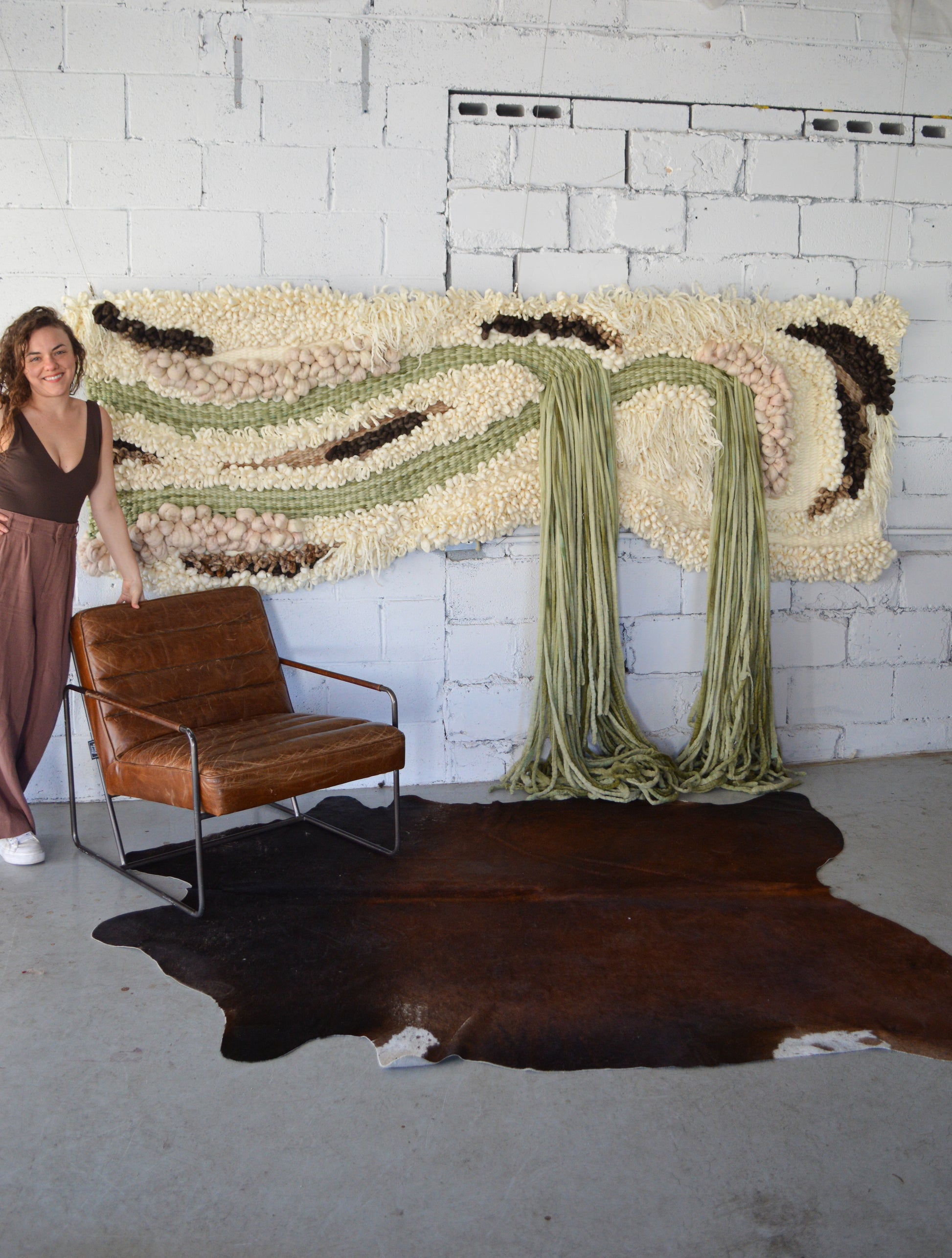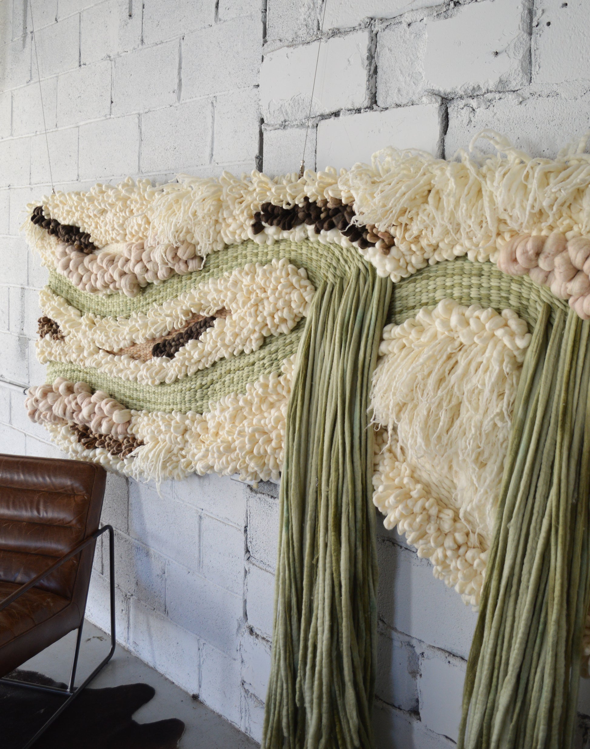 Made from hand felted and woven Australian sheep's wool, this is a statement piece that is ideal for large spaces. It provides wonderful warmth and texture and can also be very useful for sound absorption.