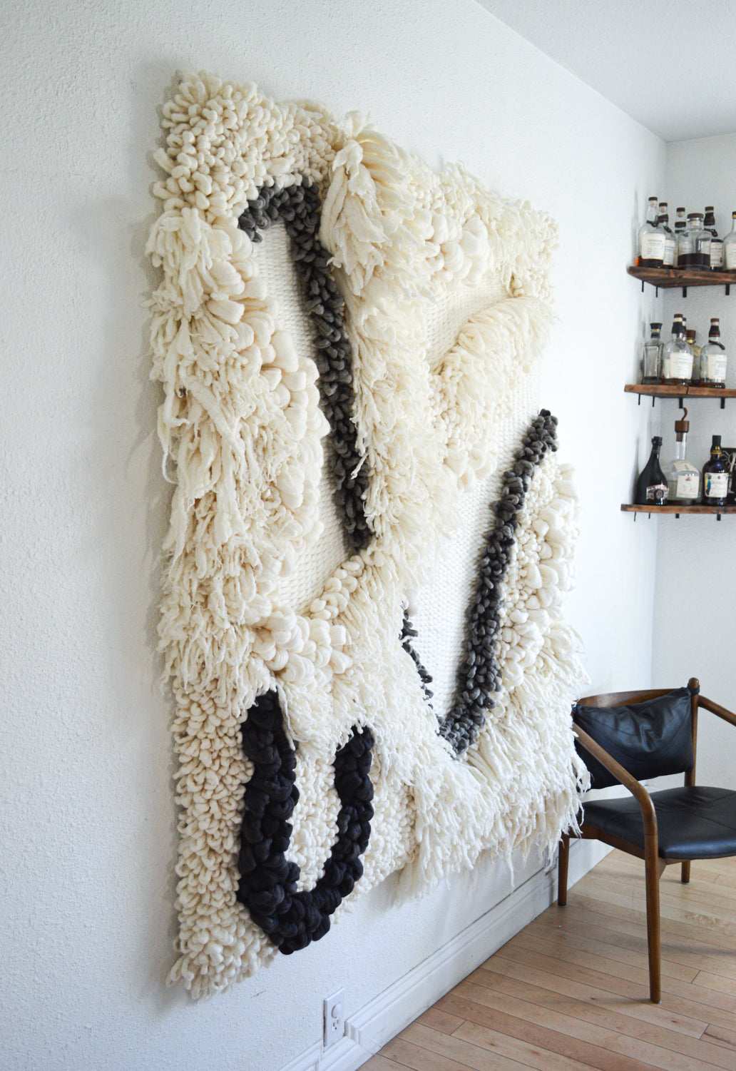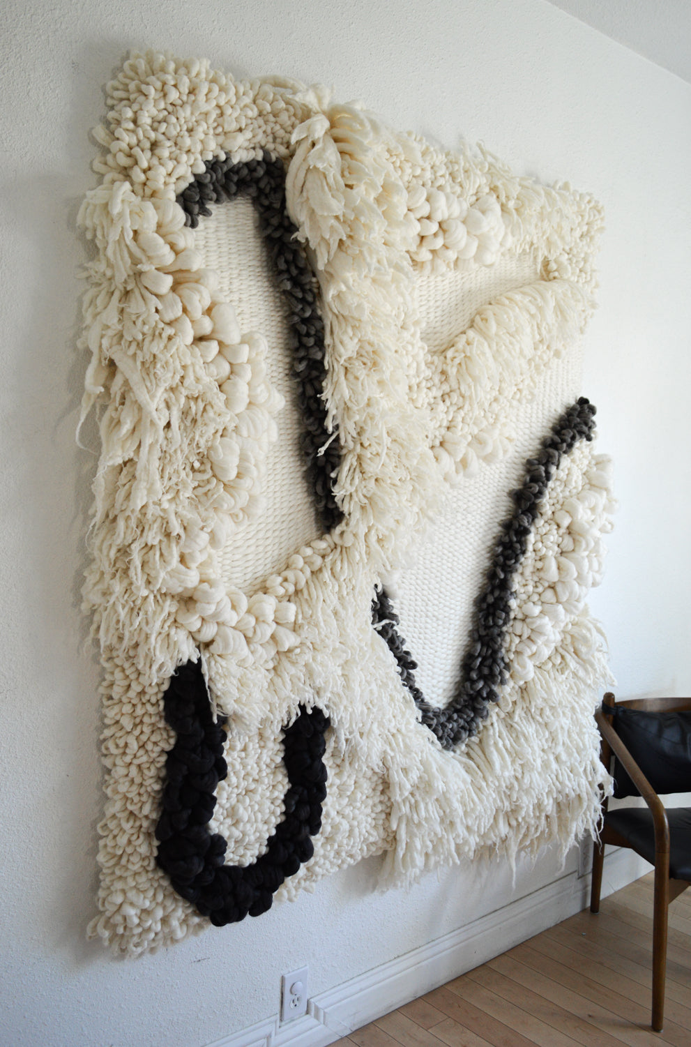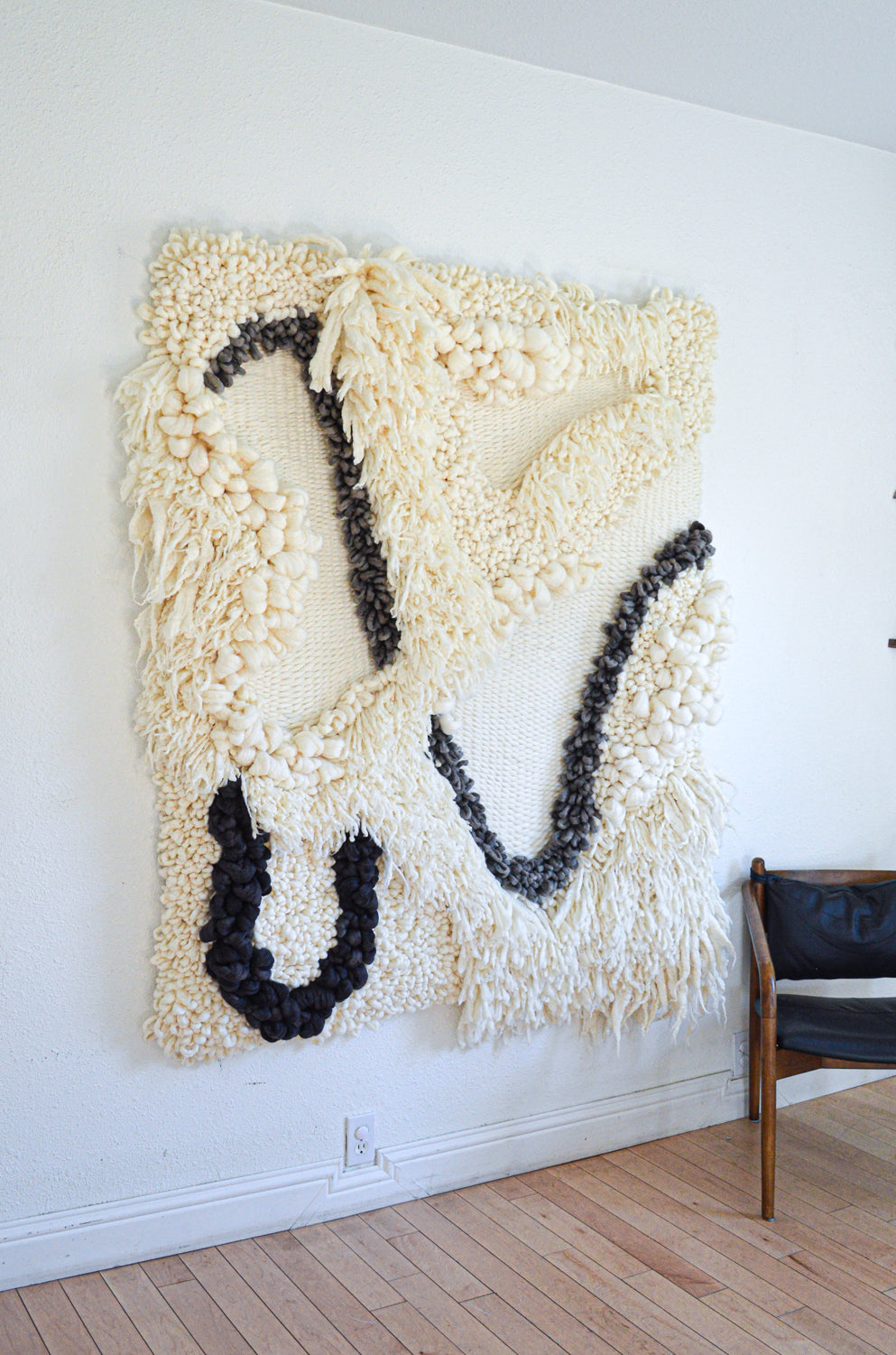 I absolutely love working on large scale commissions, so please get in touch if you're interested in something similar but would like some variations or adjustments to better suit your space. I hand dye all of my own yarns, so matching a particular color palette is right up my alley! Please send me an email to camille@broadwickfibers.com to inquire about a custom work.