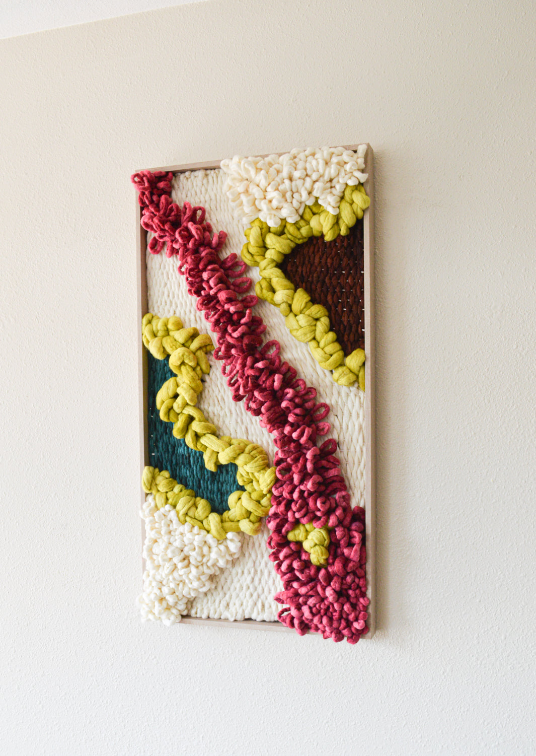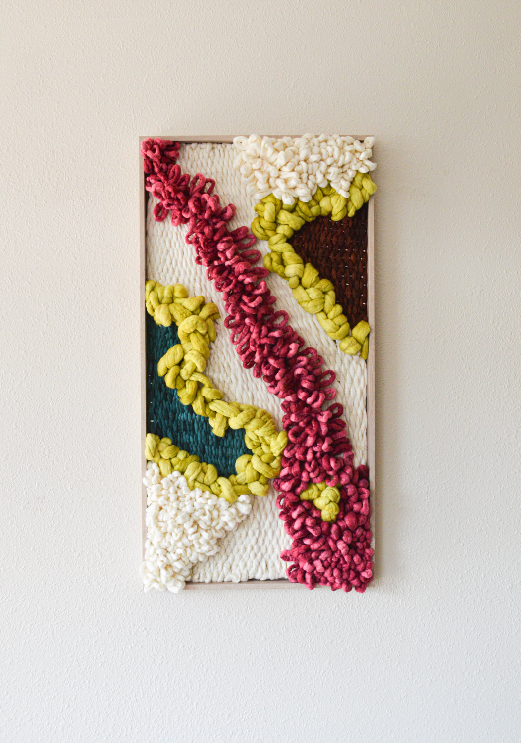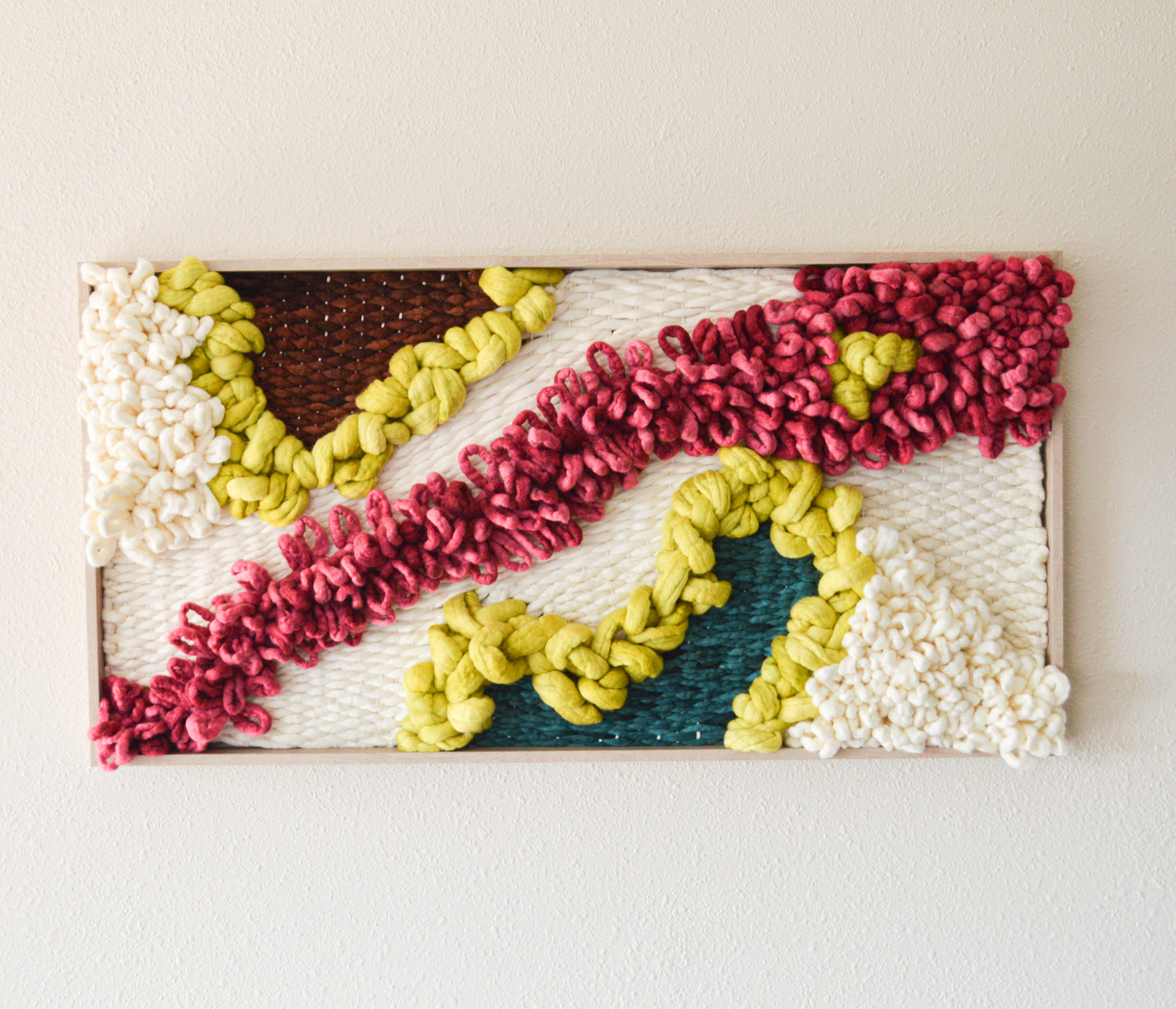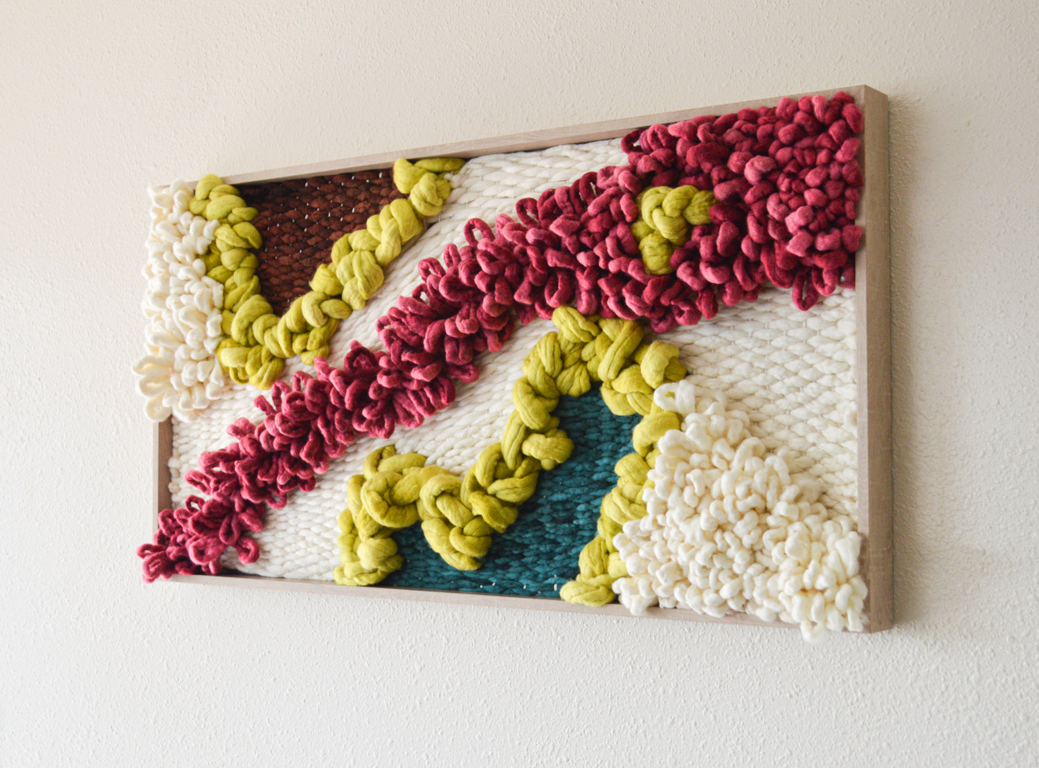 Please handle with care. Camille's weavings are designed to be a decorative wall hanging, not used as a rug. A gentle steaming is welcome to help straighten fringe after shipping. No routine maintenance is required other than an occasional dusting with a feather duster.