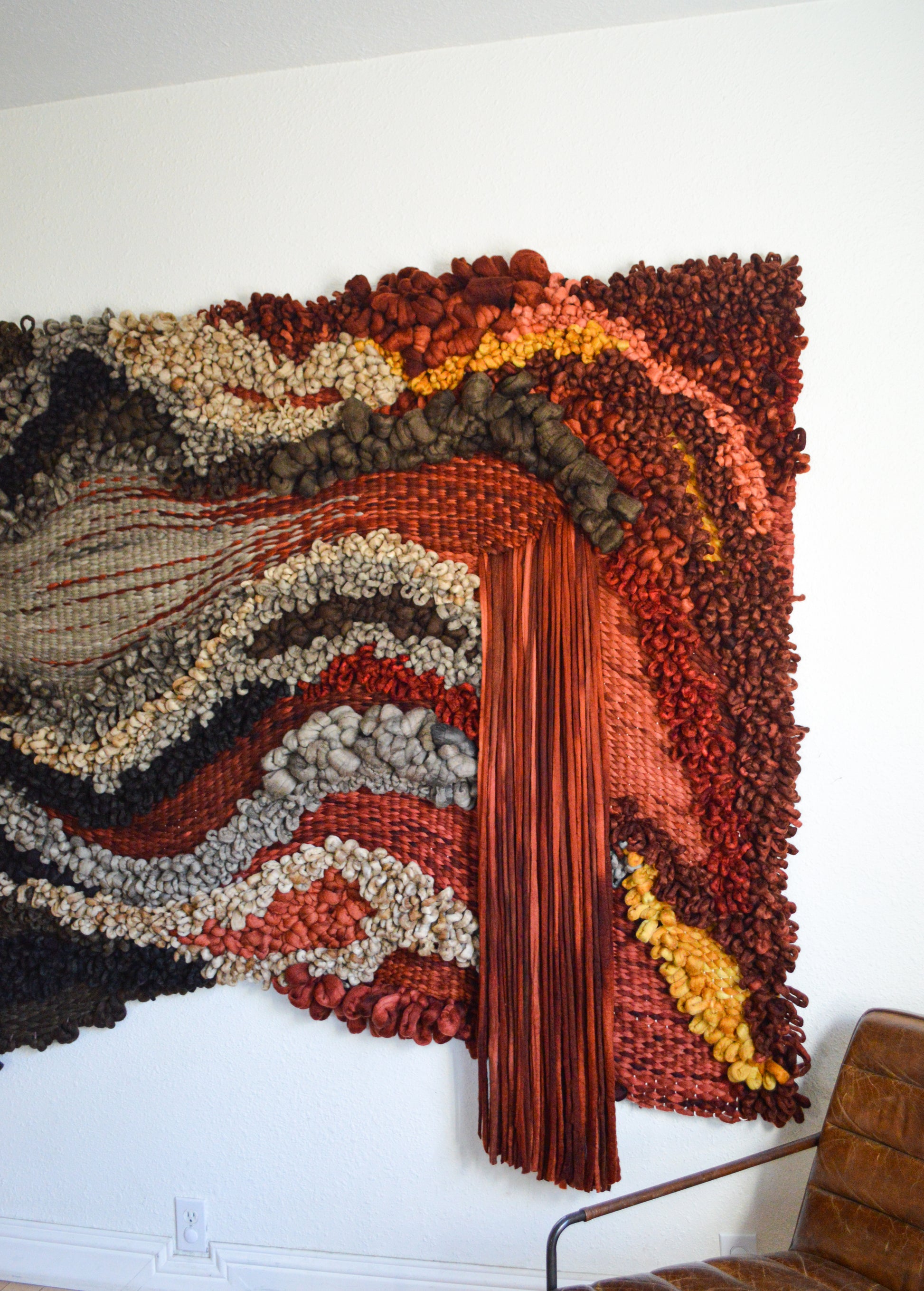 I absolutely love working on large scale commissions, so please get in touch if you're interested in something similar but would like some variations or adjustments to better suit your space. I hand dye all of my own yarns, so matching a particular color palette is right up my alley! Please send me an email for more details on pricing etc