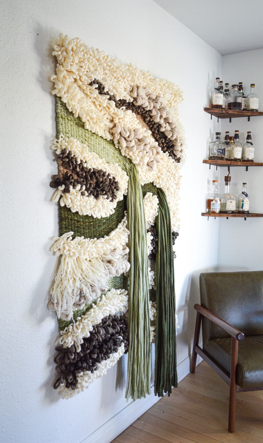 Rich in visual and tactile detail, the piece features intricate loops, plush tufts, and cascading strands that drape down like vines or waterfalls, adding depth and motion. Every section is carefully composed to play with light and shadow, creating a dynamic statement that transforms any wall into a living canvas.